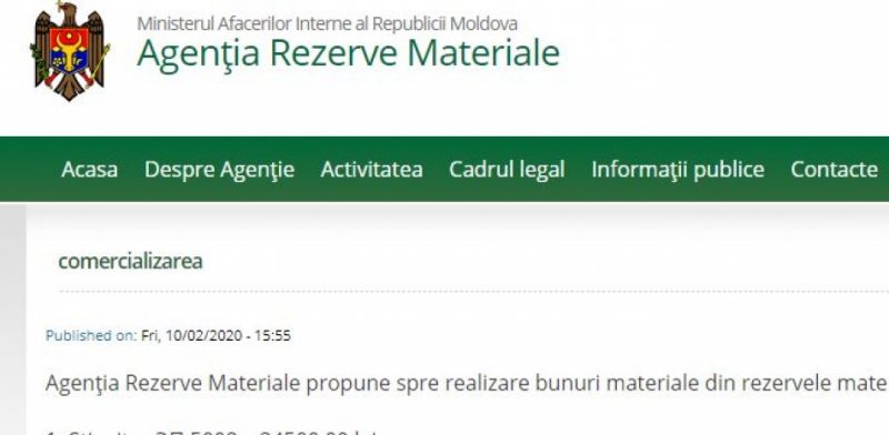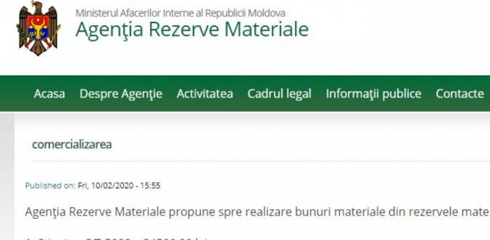 Agenția Rezerve Materiale din subordinea Ministerului Afacerilor Interne propune spre realizare unele bunuri materiale din rezervele materiale de stat la prețuri reduse, conform listei: