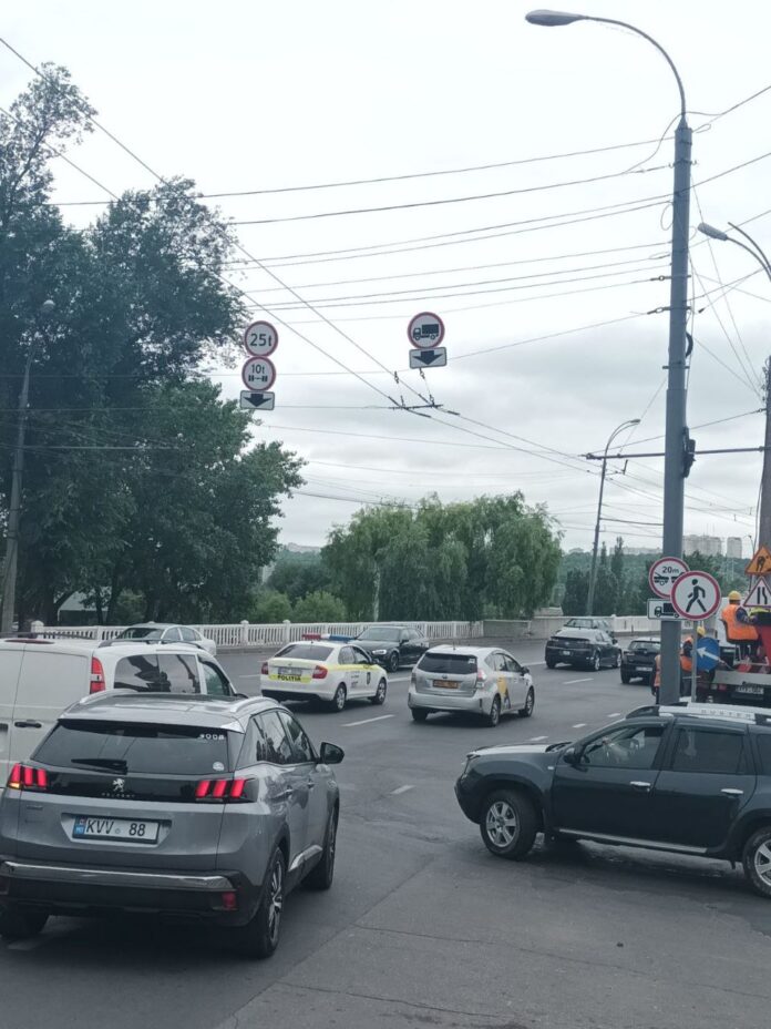 Pe podul din str. Ismail, autocamioanele vor circula doar pe benzile interioare ale carosabilului. Noi indicatoare rutiere sunt montate în acest sens.