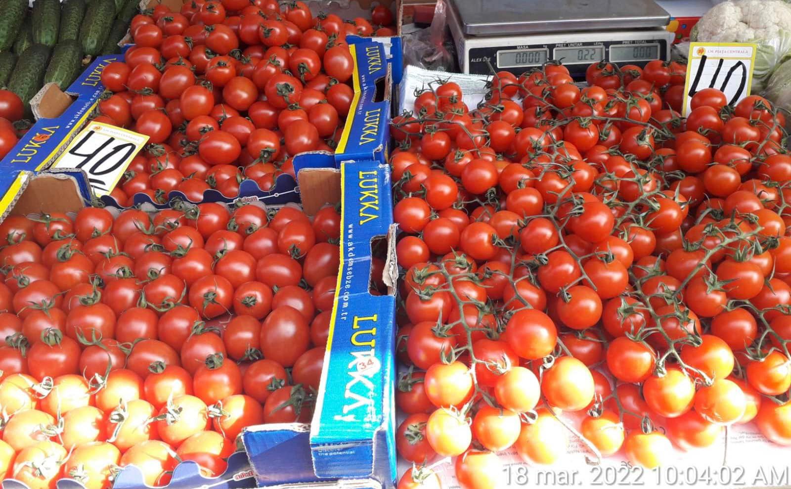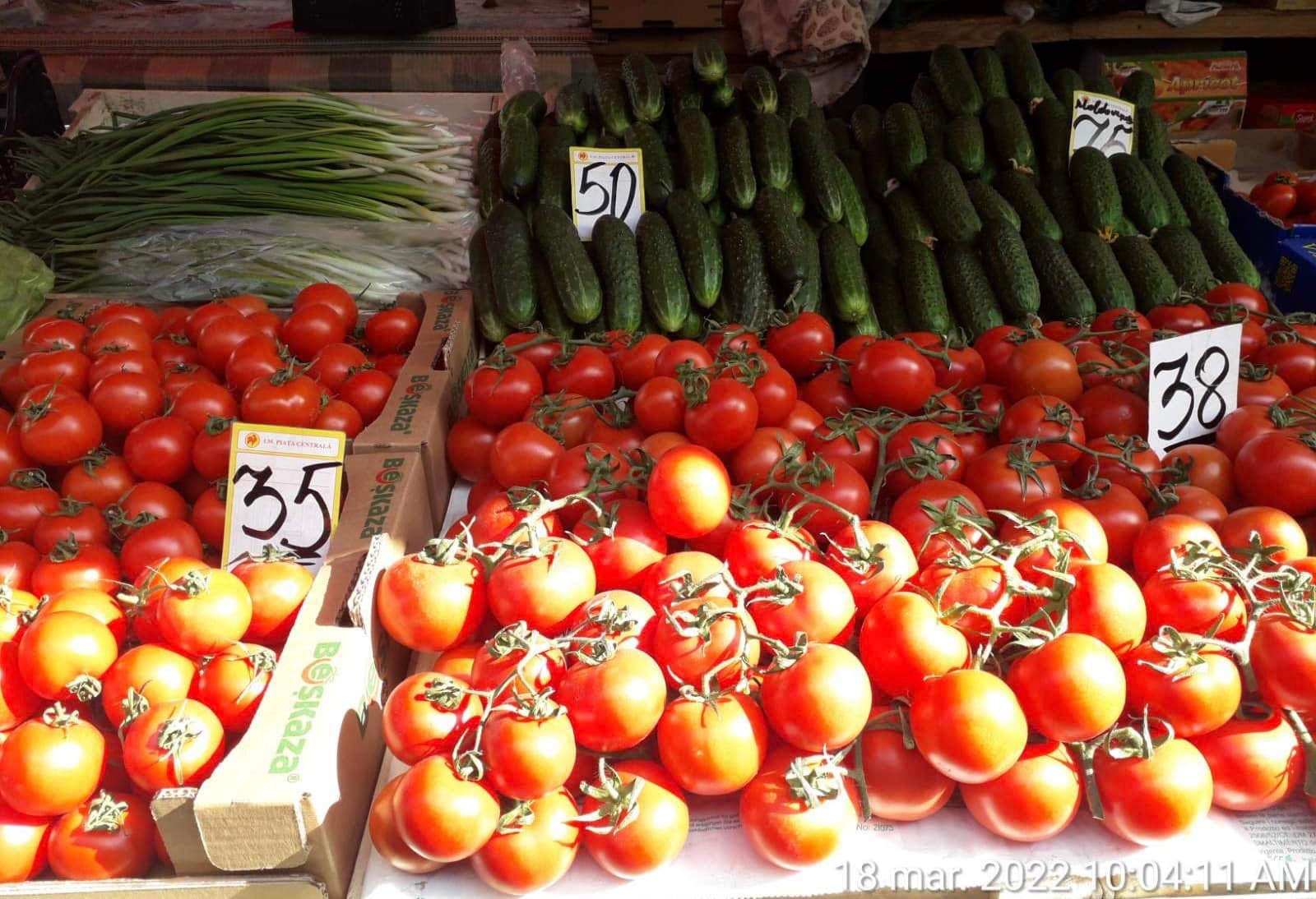 Astfel, astăzi, 18 martie, prețul unui kilogram de roșii variază între 35 și 40 de lei, varza proaspătă costă 22 de lei, dovlecei – 40 lei, conopida – 40 lei, ceapa – 7 lei.
