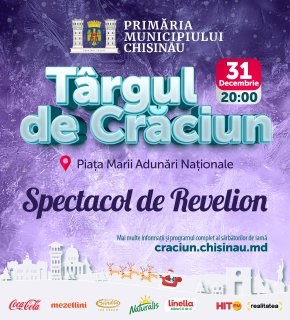 Primăria municipiului Chișinău invită locuitorii și oaspeții Capitalei să întâmpine Noul An într-o atmosferă de sărbătoare, tradiție și muzică, la Spectacolul de Revelion organizat în cadrul Târgului de Crăciun din Piața Marii Adunări Naționale.