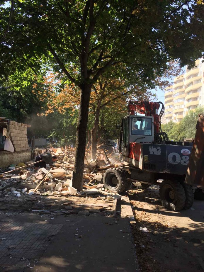 Astăzi, 27.07.2020, în temeiul dispoziției Pretorului sectorului Ciocana, Sinilga Școlnic, nr. 01-5/97 din 23.07.2020, continuă lucrările de demontare și evacuare a construcției (pavilion) cu terasă din str. Mihail Sadoveanu nr. 28/2.