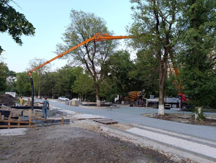 De asemenea, continuă lucrările de amenajare a scuarului din preajma AMT Ciocana, str. Vadul lui Vodă, 80.
