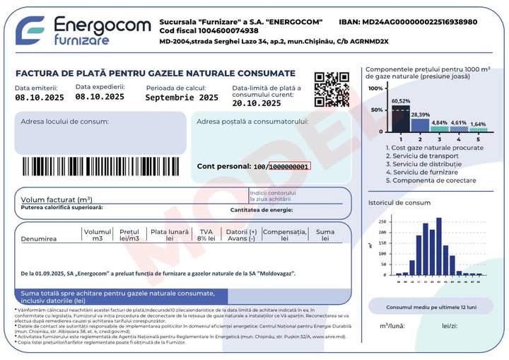 Potrivit companiei, emiterea facturilor se realizează pe baza datelor transmise de operatorii de distribuție, cum ar fi „Chișinău-Gaz” SRL, „Bălți-Gaz” SRL sau „Cahul-Gaz” SRL. Citirea contoarelor și transmiterea informațiilor către furnizori sunt responsabilitatea exclusivă a operatorului de distribuție. În anumite situații, cum ar fi lipsa accesului la contor, pot apărea diferențe între consumul real și cel facturat. În aceste cazuri, operatorul verifică și recalculează consumul, iar eventualele diferențe vor fi corectate în facturile viitoare.