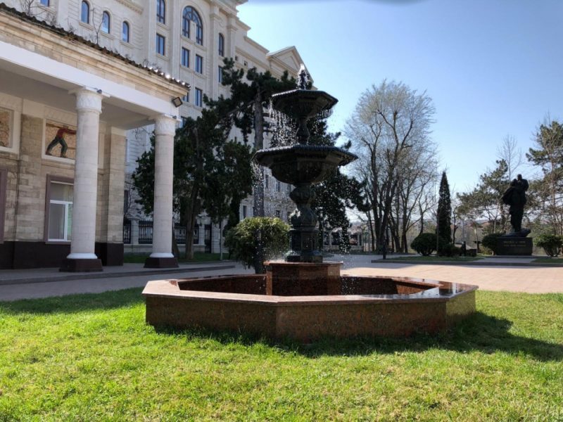 Astfel, pentru confortul locuitorilor orașului, în scuar a fost amenajată o fântână arteziană, împrejmuită de 4 vaze de flori, iar suprafața a fost placată cu granit.