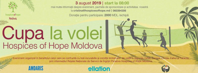 Hospices of Hope Moldova invită toți doritorii să se înscrie la Cupa Hospices of Hope Moldova la Volei de Plajă, care va avea loc pe 3 august 2019, cu începere la 8.00 la Terenul specializat din Parcul Valea Morilor.