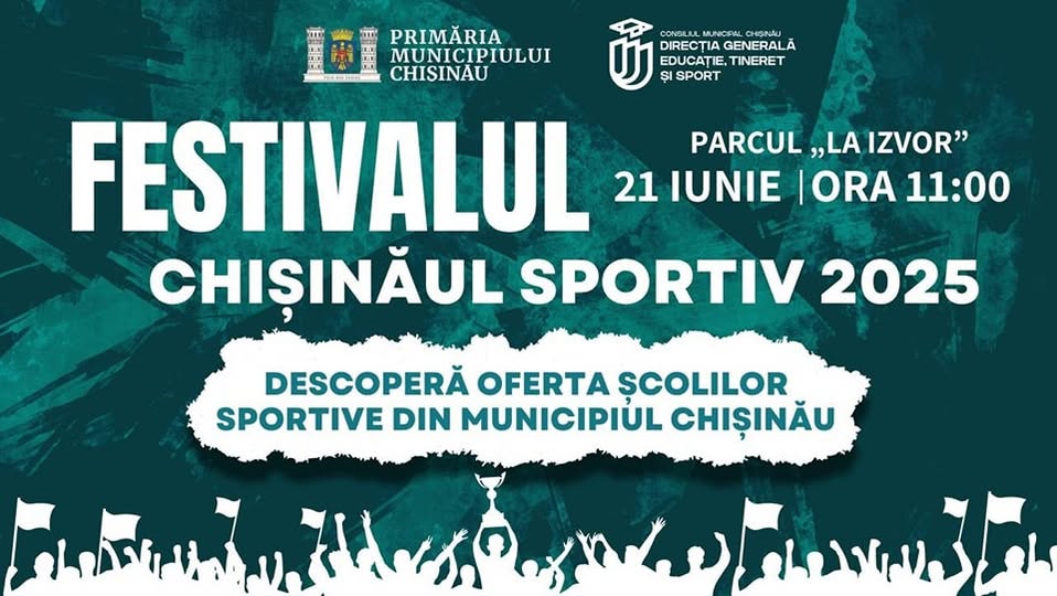 Primăria Chișinău informează că sâmbătă, 21 iunie 2025, ora 11:00, în Parcul „La Izvor” va fi dat startul celui mai important eveniment sportiv al anului – Festivalul „Chișinăul Sportiv 2025”.