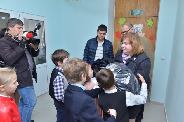 Șeful interimar al Direcției, Lucia Caciuc, a împărțit daruri beneficiarilor și anume uniforme pentru școală.