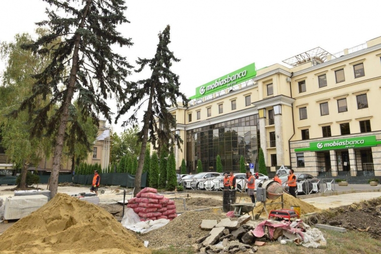 Până în prezent, au fost executate lucrări de decapare bordurilor și asfaltului vechi, curățirea copacilor și trasate rețelele pentru iluminat și irigare a zonelor verzi. Totodată muncitorii au început montarea bordurilor noi pentru alei și aplicarea pavelelor pietonale.