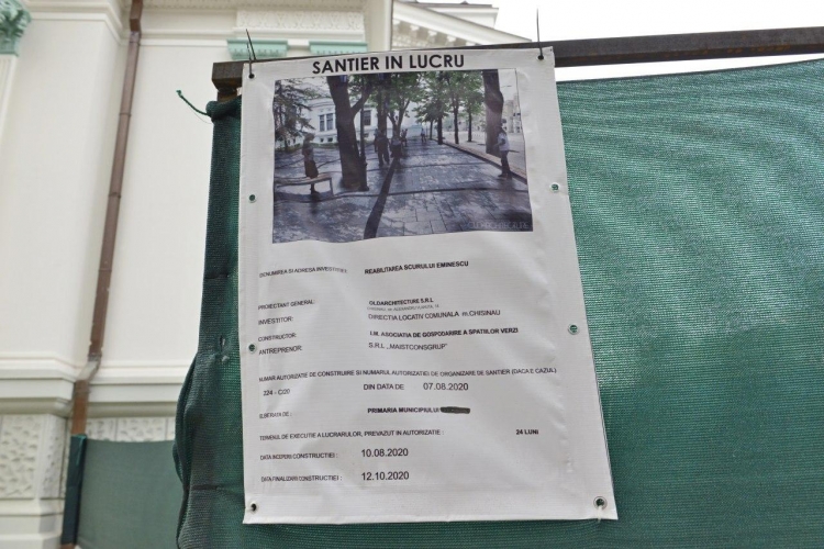 Activitățile pe șantierul de renovare a scuarului „Mihai Eminescu” din centrul capitalei se desfășoară conform graficului aprobat.