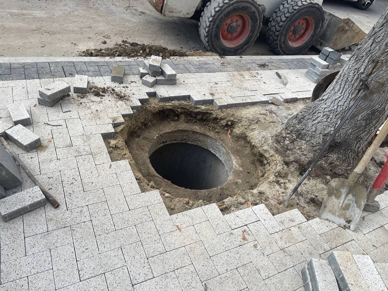 După ce pe parcursul săptămânii trecute, când temperaturile au coborât mai jos de -5 grade, lucrările de pavare a trotuarelor au fost stopate, astăzi muncitorii, din nou, au revenit în șantier.