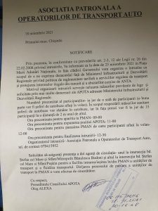 Asociația Patronală a Operatorilor de Transport Auto (APOTA) anunță pe data de 25 noiembrie proteste în centrul capitalei. Transportatorii auto nu sunt de acord cu politica tarifară aplicată, motivul ce i-a determinat să protesteze în Piața Marii Adunări Naționale.